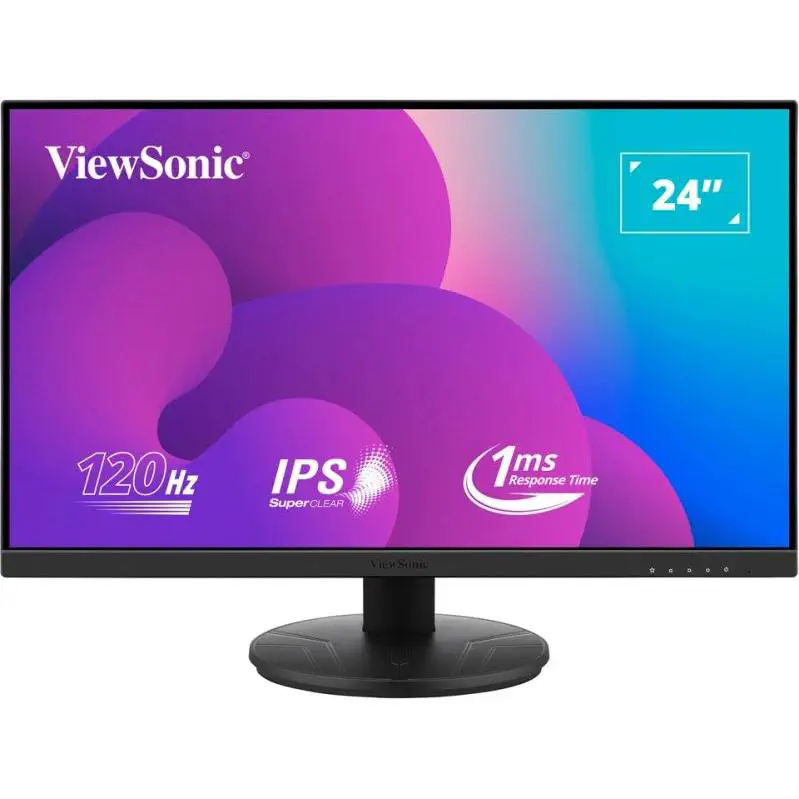 Monitor ViewSonic VX2416A de 24 pulgadas con resolución Full HD (1920x1080) y panel SuperClear IPS. Ofrece una tasa de refresco de 120Hz, tiempo de respuesta de 1ms (MPRT) y tecnología AMD FreeSync para una experiencia de juego fluida y sin interrupciones. Incluye altavoces duales, conectividad USB-C, DisplayPort y HDMI, además de tecnologías de cuidado ocular.
