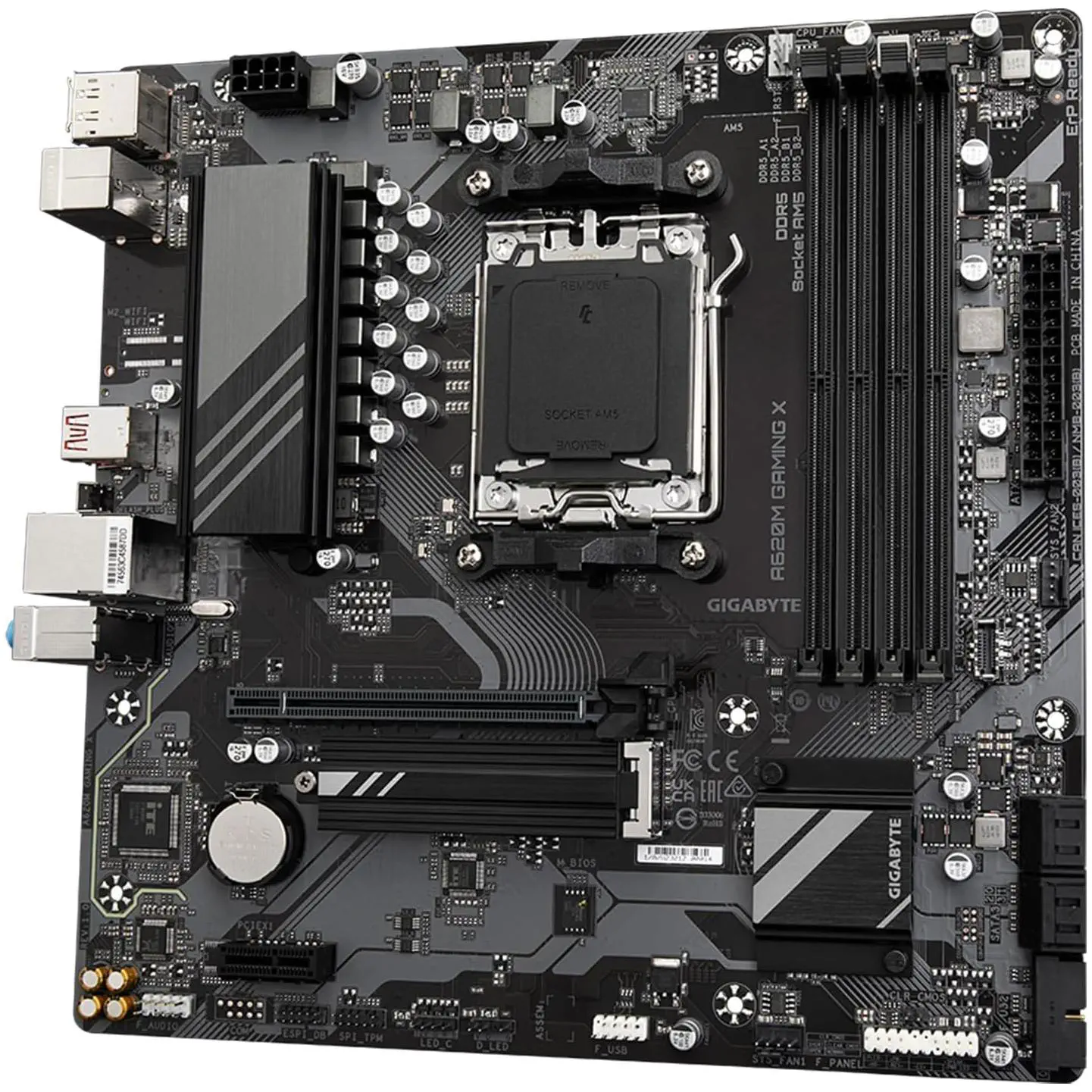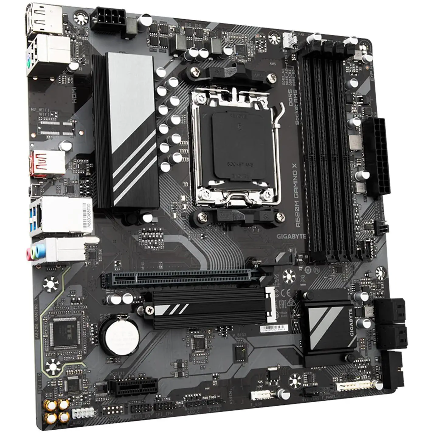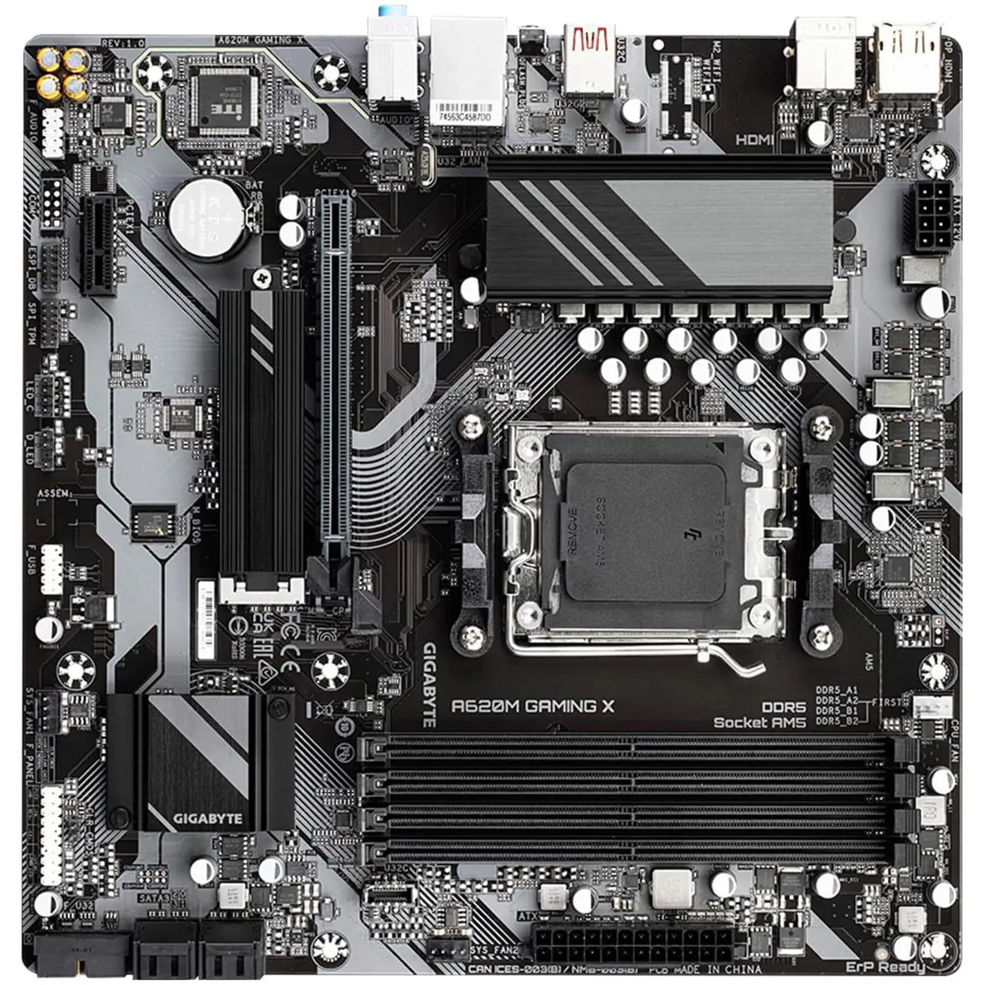 La Placa Base Gigabyte A620M GAMING X es una opción sólida y asequible para construir un sistema con la última plataforma AMD AM5. Diseñada para ofrecer un equilibrio entre rendimiento y coste, esta placa base Micro-ATX soporta procesadores AMD Ryzen™ de las series 7000 y 8000, lo que la convierte en una excelente base para construir un PC gaming o de alto rendimiento sin realizar una inversión excesiva.