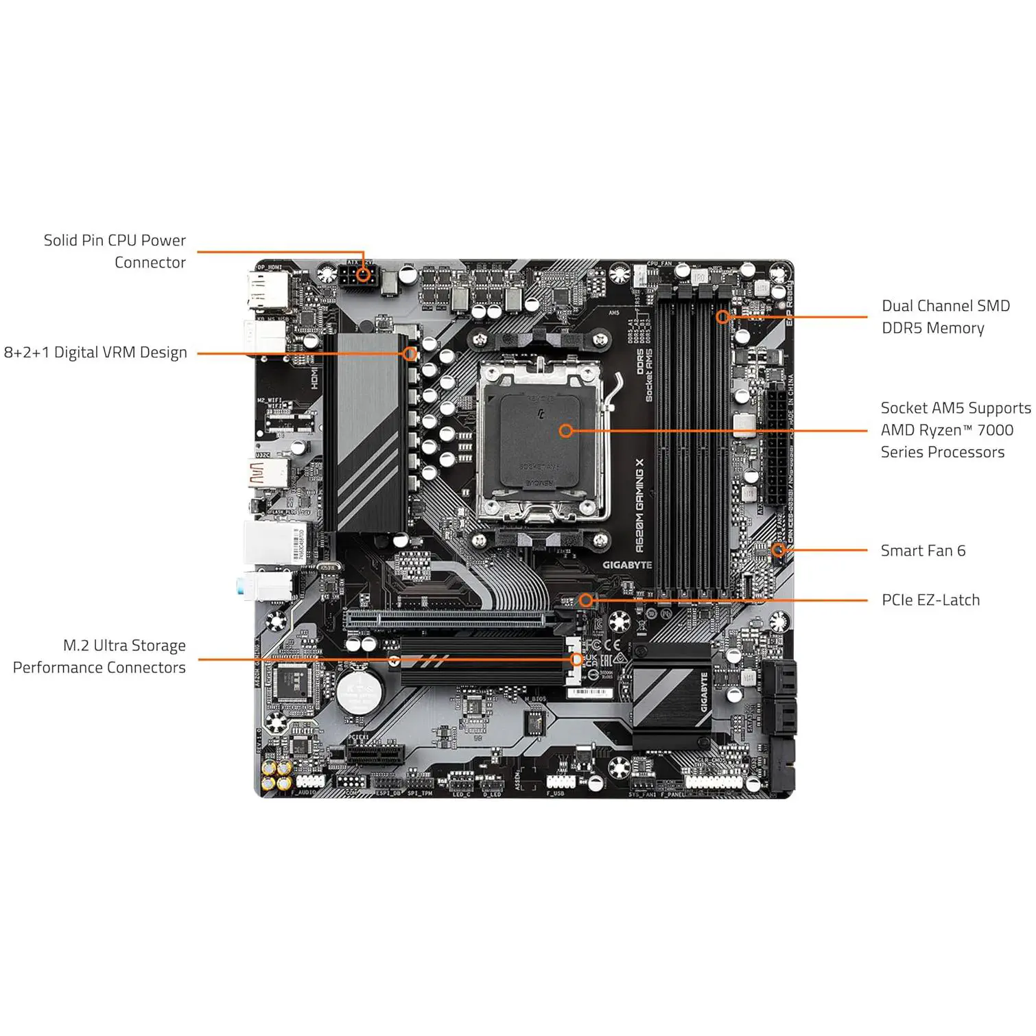 Descubre la placa base Gigabyte A620M GAMING X, diseñada para la plataforma AM5 con soporte para procesadores AMD Ryzen serie 7000 y 8000. Ofrece memoria DDR5, conectividad PCIe 4.0, y un diseño VRM robusto para un rendimiento óptimo en gaming y multitarea. Incluye características como Smart Fan 6, Q-Flash Plus y EZ-Latch para una experiencia de usuario mejorada.