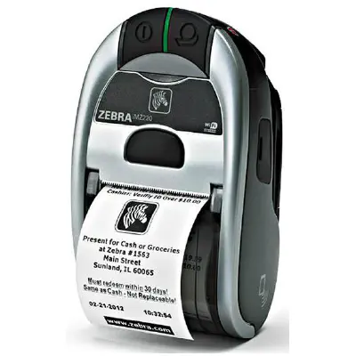 La Zebra iMZ220 es una impresora portátil de recibos y tickets, diseñada para ofrecer movilidad y eficiencia en cualquier entorno de trabajo. Con su tecnología de impresión térmica directa, imprime de forma rápida y clara códigos de barras, textos y gráficos.