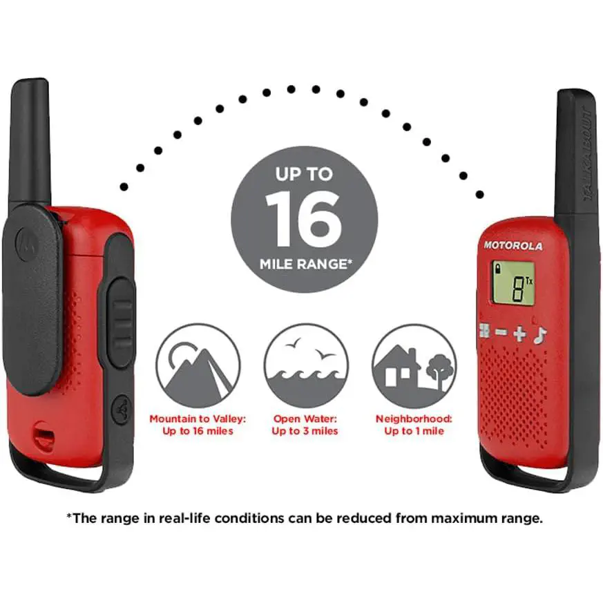 Motorola T110 Talkabout Radios Bidireccionales (Paquete Doble), Rojo