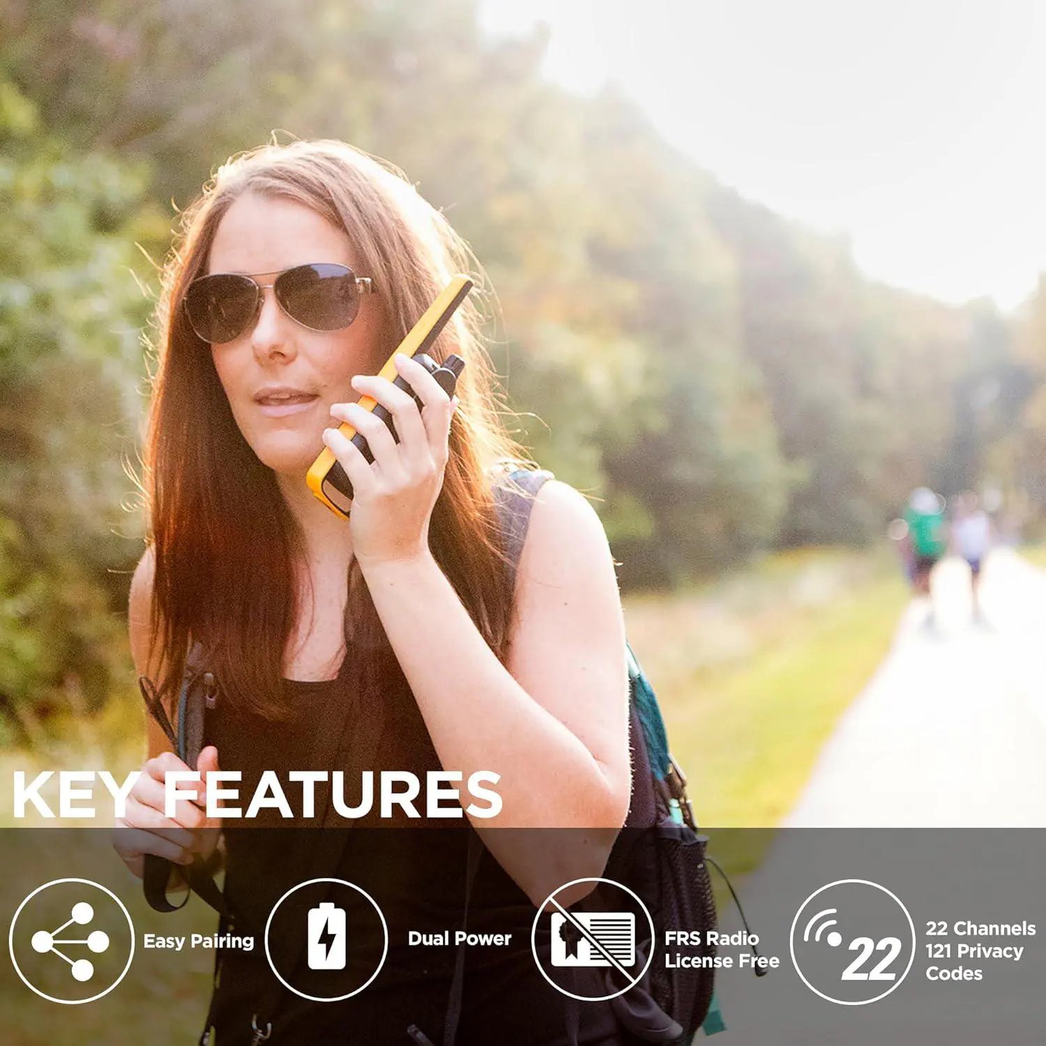- Canales y Privacidad: Disfruta de 22 canales FRS (Servicio de Radio Familiar) y 121 códigos de privacidad, lo que suma un total de 2,662 combinaciones para asegurar comunicaciones claras y sin interferencias.