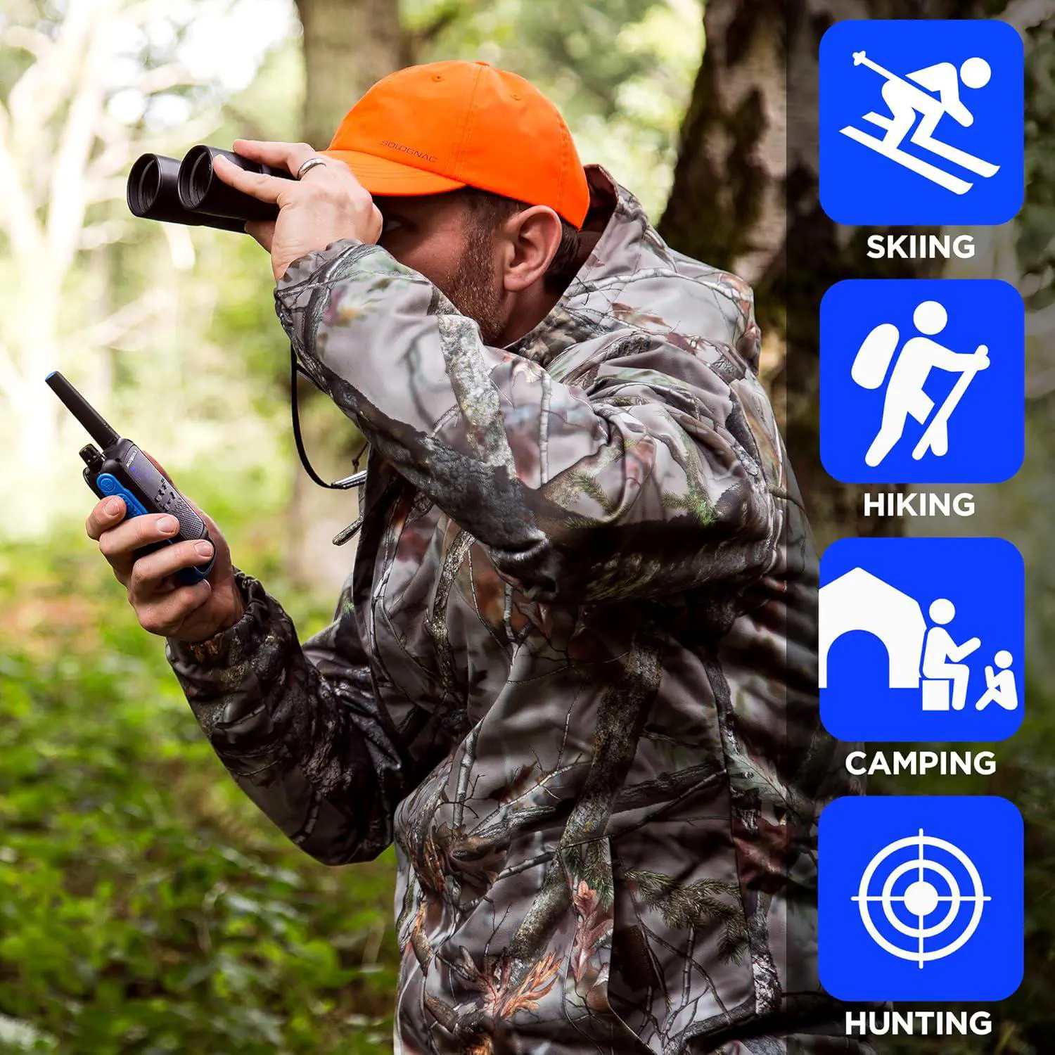 - Alcance Extendido: Disfruta de comunicaciones de hasta 35 millas en condiciones óptimas, ideal para senderismo, camping, caza o eventos al aire libre.