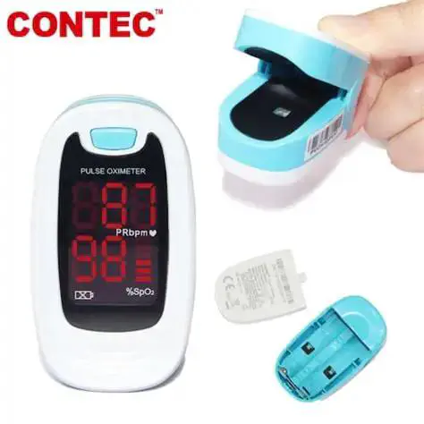 Oximetro de Pulso Contec CMS50M, portátil y avanzado, mide la saturación de oxígeno (SpO2) y la frecuencia cardíaca (PR) a través del dedo. Pantalla LED de fácil lectura, apagado automático y bajo consumo de batería. Ideal para monitoreo personal en casa, hospitales o centros deportivos.